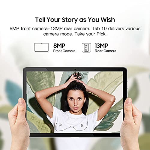Fotocamera più professionale:Tab10 ha una fotocamera frontale da 8 MP con pixel aggiornati, offrendoti un'esperienza selfie senza precedenti e un'esperienza di videochiamata chiara. Fotocamera posteriore da 13MP, apertura F.NO 2.2, risoluzione video massima 4224*3192. Scatta facilmente foto e video di alta qualità. Puoi modificarlo sul tablet subito dopo lo scatto e condividerlo rapidamente sui tuoi siti di social network per registrare la tua bella vita.
