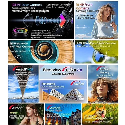 ★【Tripla Fotocamera Posteriore da 108 MP, Rendi Straordinarie le Condizioni di Bassa Luminosità:】La fotocamera ISOCELL HM6 da 108 MP può ripristinare completamente l'atmosfera perfetta in condizioni di scarsa illuminazione durante concerti, feste o panorami urbani al buio, producendo immagini con una luminosità realistica pur mantenendo dettagli vividi nelle aree d'ombra, nelle alte luci e nei toni medi per creare un capolavoro fotografico ben equilibrato e dinamico. (Fotocamera Frontale 16 MP)