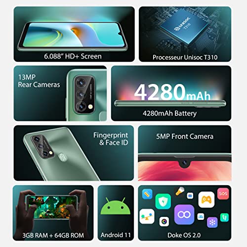 Blackview A50(2022) Telefono Offerte, Unisoc T310 Quad-core 3GB+64GB, Schermo HD+ 6.088, Fotocamera 13MP+5MP, 4280mAh Batteria, Smartphone Android 11 Dual SIM 4G, Impronta Digitale GPS, Verde
