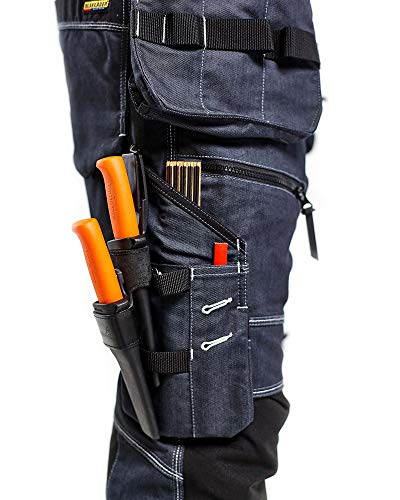 la tasca sulla gamba ha una chiusura lampo e le tasche extra larghe per chiodi sono dotate di passanti per attrezzi e ulteriori scomparti per attrezzi