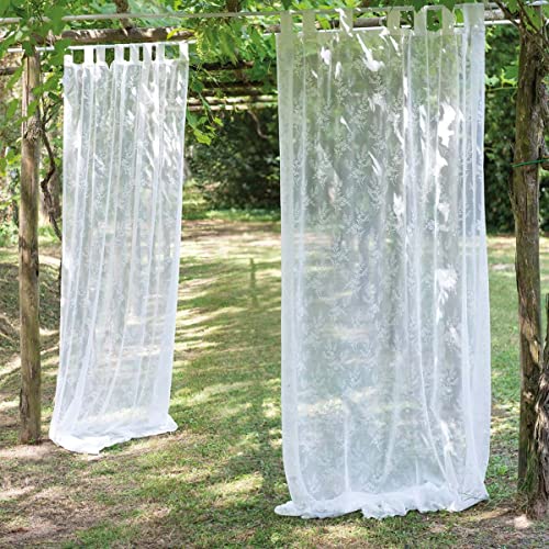 Tenda "Orgoglio" bianca 150 x 290 cm con passanti di Blanc Mariclo, ideale per un arredamento shabby chic in un'atmosfera accogliente e romantica.