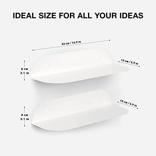 BLANCK Mensole da Muro Design, Set di 2, Metallo, Mensola Moderne per Bagno, Cucina, Cameretta, Salotto, Bianco