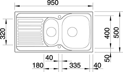 Dimensioni esterne 950 x 500 mm/foro 932 x 482 mm