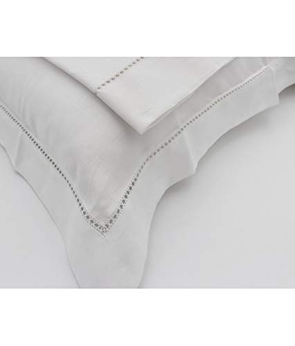 Blanco raya - Coppia di federe in lino bordate con gigliuccio - gigliuccio-f. - Bianco, 50x80 cm, Lino
