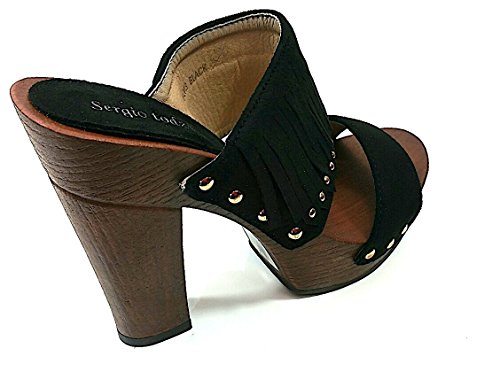 Blanco Store - Sandali in Legno Zoccoli Donna Tacco Largo e Plateau (40, Nero)