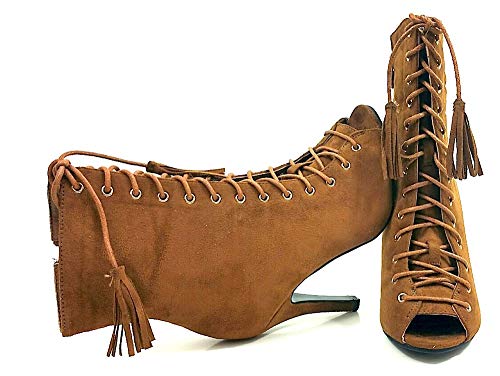 Blanco Store - Stivaletti Donna Tacco Alto Stringati Tronchetti Punta Aperta Scarpe Spuntate con Lacci (40 EU, Camel)