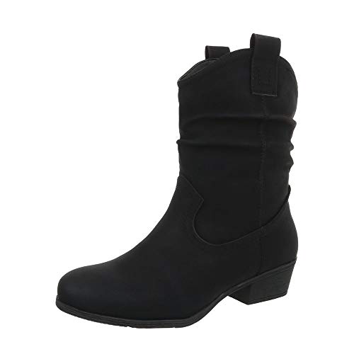 Blanco Store - Stivaletti Texani Donna Stivali Camperos Tacco Basso (39 EU, Nero)