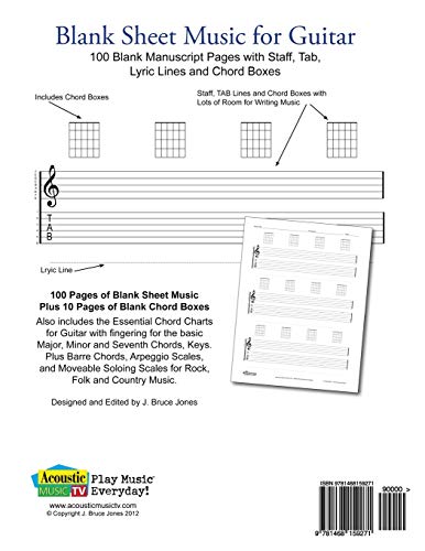 Blank Sheet Music for Guitar: 100 Blank Manuscript Pages with Staff, TAB, Lyric Lines and Chord Boxes