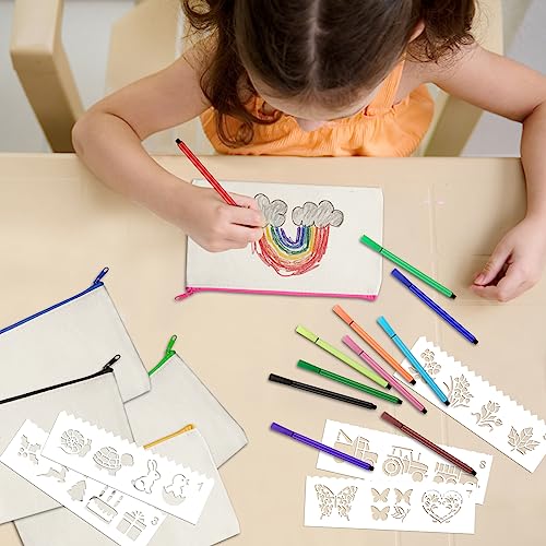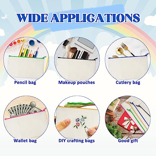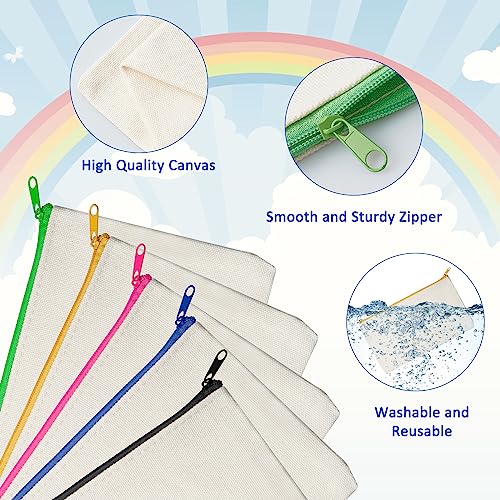 Design colorato con cerniera: l'astuccio da dipingere è dotato di cerniera in metallo, che può essere tirato delicatamente e facilmente aperto e chiuso. Le borse in tela fai-da-te occupano poco spazio. bambini in tela con 5 diversi colori di chiusura lampo, tra cui nero, blu, rosa, giallo, verde. Diversi colori possono distinguere diversi usi per posizionare cose diverse e organizzare i tuoi articoli.