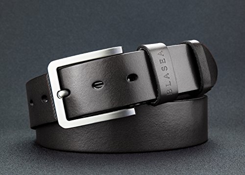 Blasea, cintura in pelle a grana piena per jeans, da uomo Nero Large