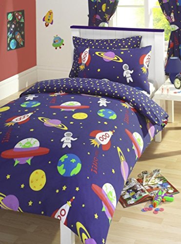 Blue Blast Off Space Man Rockets Reversible Junior Cot Bed Duvet Cover Set Inc Pillowcase by Kids Club