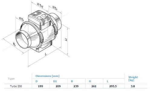 Blauberg Estrattore BI-Turbo 20cm + Cavo - 1080m3/h
