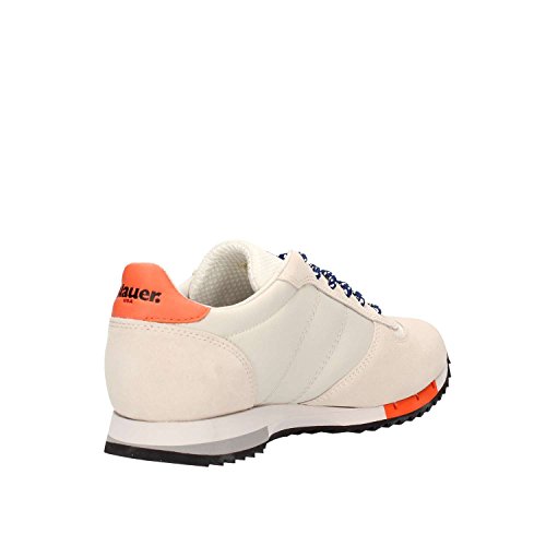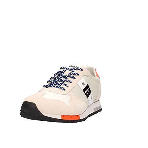 Blauer Scarpe Sneaker Uomo Modello Quincy in Tessuto e Camoscio Beige chiarissimo e Bianco con Inserti Arancioni e Blu. Taglia 43