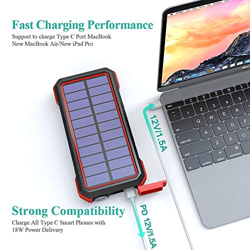 BLAVOR Solar Power Bank 10000 mAh Caricabatteria Solare Portatile LED Impermeabile Antiurto per Il Cellulare iPad Tablets e più (Arancio)