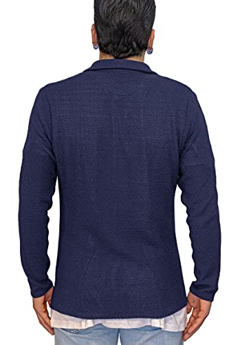 Blazer in Cotone, Giacca Jacket da Uomo Slim Fit - Punto Cucitura Chicco di Riso - Artigianale, Made in Italy - Casual, Classica Sportiva (L, Blu Marino)