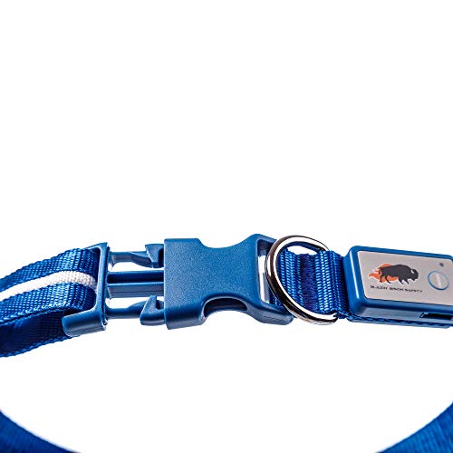 Blazin' Bison Sicurezza condotta Collare da Cane - USB Ricaricabile con Luce Blu Medio Resistente all'Acqua Lampeggiante