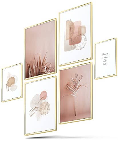 BLCKART Forme astratte Infinity - Motivo a palma su entrambi i lati Elegante set da soggiorno Motivo a forme astratte ad acquerello 4 x A3 | 2x A4 | senza cornice