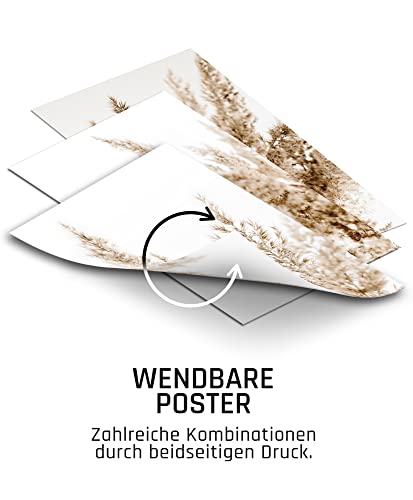 BLCKART - Infinity - Set di immagini - Beige - Elegante - Doppio lato - Poster - Motivo: natura, erbe, erba della pampa - Decorazione Boemia per il soggiorno (L - 4 x A3-2 x A4 - Senza cornice)