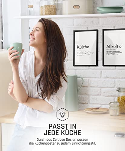 BLCKART - Set di poster con definizioni in lingua tedesca, ideali per sala da pranzo e cucina, senza cornice (Kaffee, Küche, Alkohol & Nutella, A4)