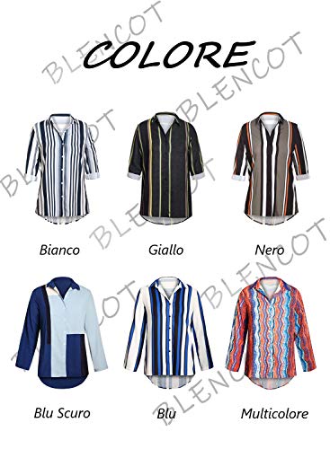 BLENCOT Camicetta Elegante Donna Camicia da Donna Manica Lunga Donna Blusa con Stampa a Righe Camicia T-Shirt, Giallo, S