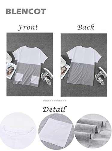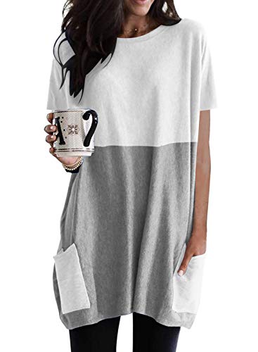 BLENCOT Camicetta Lunga Donna a Manica Corta Maglietta Elegante Design Tasca Tinta Unita Shirt Largo Donna Maglia Primaverile Donna XXL Grigio