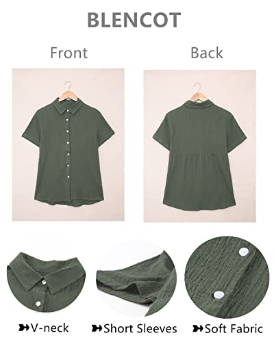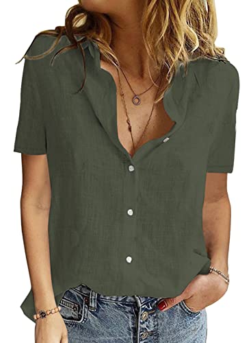 BLENCOT Camicia Donna Manica Corta Camicetta Scollo a V Shirt Donna con Bottoni Cmicie Donna Elegante Top Donna Estiva Tinta Unita Business Chic XL Verde