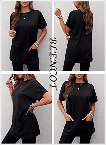 BLENCOT Maglia Donna a Manica Corta per Estate Primavera Pullover Lungo Donna Cotone Maglietta Casual per Leggings Donna Blusa Lunga Primaverile Camicetta Lunga Blusa Donna M Nero