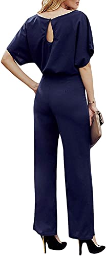 BLENCOT Monopezzi e Tutine da Donna Moda Tutine Intere di Colore Solido Pagliaccetti Gamba Larga Casual Jumpsuits Lungo Playsuits a Manica Corta Rompers con Cinghie