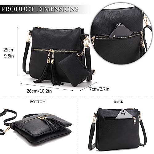 BlesMaller Borsa a tracolla per donna Borsa a tracolla vintage in pelle PU con tracolla nappa con cerniera e portamonete,Nero