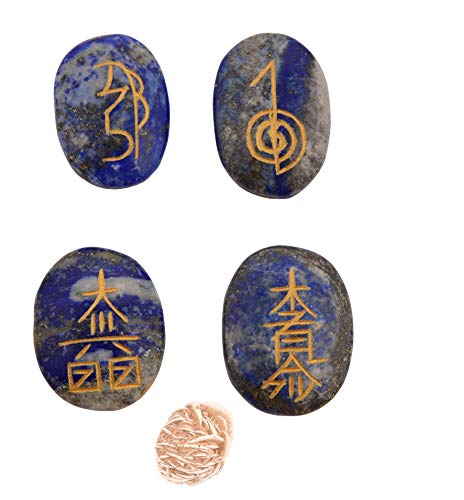 Vendita per - 1 SET Con Selenite Di Deserto Di Rose | Potente set di 4 cristalli curativi incisi con simboli Usui Reiki Lapis lazuli Stone