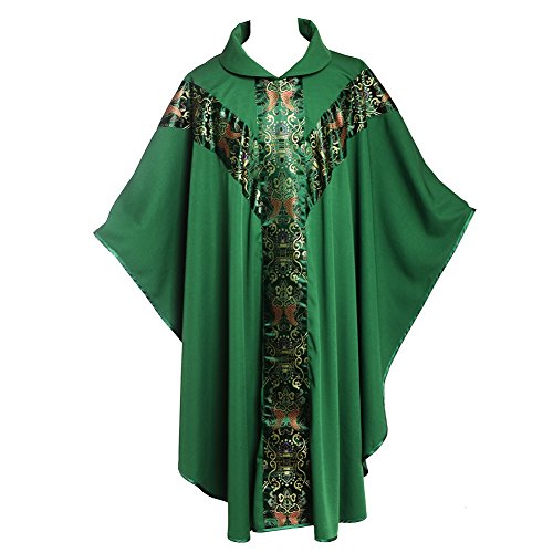 BLESSUME Casula sacerdotale ricamata, paramenti da altare (verde, collare pieghevole, stile #4)
