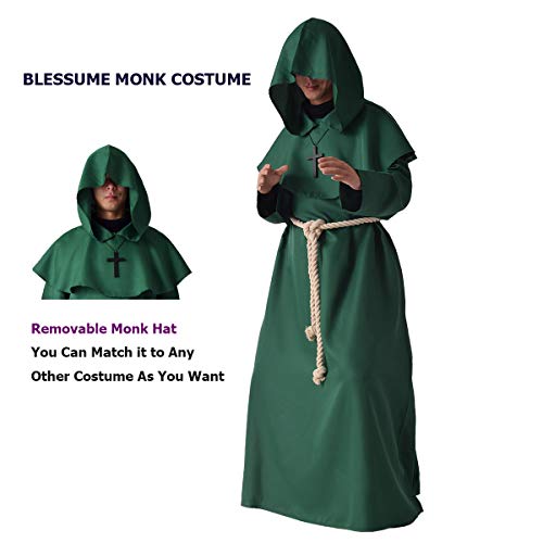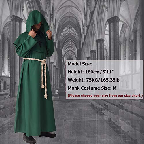 BLESSUME Costume da Monaco Frate Medievale Abito Talare Costume (M, Verde)
