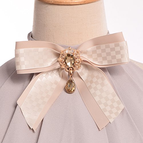 BLESSUME Donne Collo in jabot in chiffon vittoriano 1 pezzo (albicocca grigia e chiara)