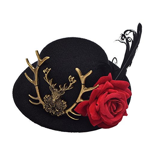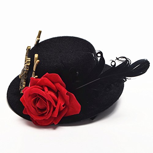 BLESSUME Gotico Donne Steampunk Ingranaggio Ali Orologio Farfalla Cappello Pizzo Capelli Clip Copricapo (K)