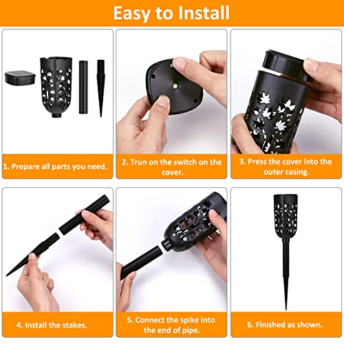 【Facile Installazione】Non sono necessari altri strumenti o fili. Tutto quello che devi fare è accendere l'interruttore, assemblare le parti, inserire ogni faretti solari da giardino nel terreno. Quindi puoi goderti un'illuminazione unica e calda di notte. In caso di problemi, non esitare a contattarci