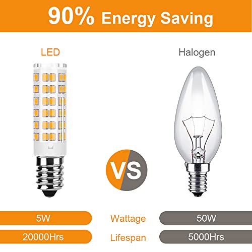 【Basso Consumo】-- Lampadina E14 5W equivalenti a 50W alogeno, risparmiando oltre il 90% di elettricità. Durata della vita di oltre 20000 ore, riduzione della frequenza e dei costi di sostituzione della lampadina.