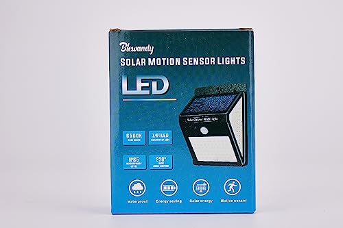 Blewandy Luce Solare LED Esterno, 1 Pezzi 144 LED Luci Solari Esterno Lampada Solare con Sensore di Movimento, 3 Modalità IP65 Impermeabile Faretti Solari a LED da Esterno per Giardino Parete