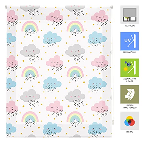 Blindecor Digital Kids | Tenda avvolgibile traslucida con stampa digitale | Modello Rainbow | 90 x 180 cm (larghezza per altezza), dimensioni del tessuto 87 x 175 cm | Tende per finestre