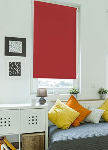 Blindecor Zeus Tenda a rullo oscurante Easyfix - Rosso bordeaux, 140 x 180 cm (Larghezza x Altezza) | Dimensioni del tessuto 137 x 175 cm. Tende termiche oscuranti senza attrezzi