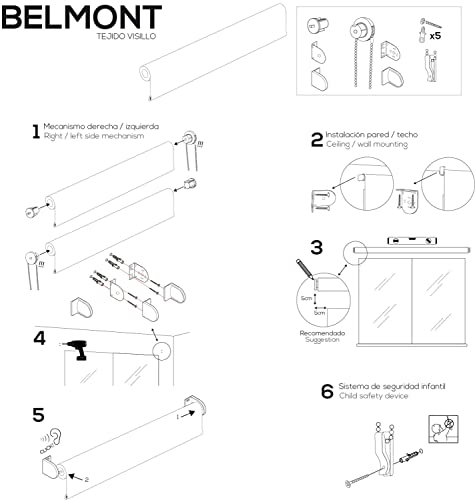 Installazione a parete o soffitto con gli stessi supporti. Meccanismo e catena in PVC di colore beige