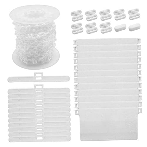 Il kit di connettori della catena cieca include 10 connettore a catena con dimensioni della lunghezza 1.8 cm / 0,7 pollici, 1 catena di tende con dimensioni della lunghezza: 1000 cm / 393,7 pollici, 12 appendiabiti ciechi verticali con dimensioni della lunghezza: 12 cm / 4,7 pollici, 12 ciechi verticali.Pesi inferiori con dimensioni della lunghezza: 12,5 cm / 4,9 pollici, soddisfare le tue esigenze.