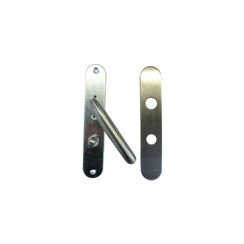 Dettagli: Ritorno a molla su tutte le funzioni Viti di fissaggio invisibili grazie a una sottopiastra Viti fornite per porte da 40 a 45. Spessore 38/55 mm Caratteristiche: Colore: acciaio inox Tipo: Chiave per WC Dimensioni: L .195/225 mm x L .42 mm x Ø 19 mm In acciaio inox
