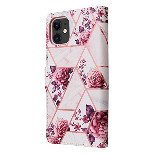 Bling Case per Apple iPhone 11 6.1" Custodia Marmo, Xifanzi iPhone 11 Women Wallet Leather Cover Marmo Brillantini Glitters Flip Caso in Pelle con Credit Card Slots Fold Stand Leather Cover Rosa