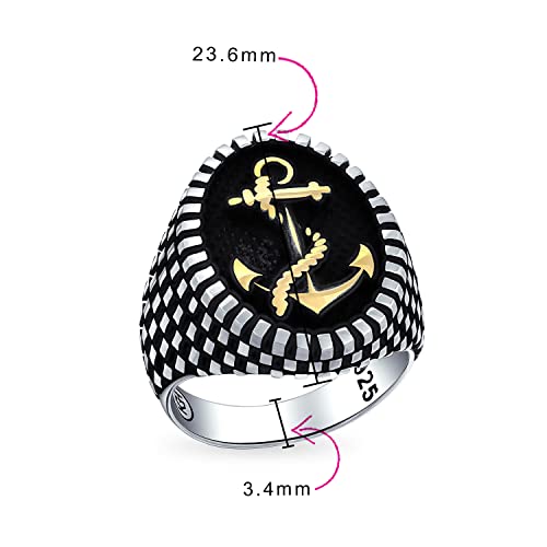 Bling Jewelry Anello da uomo con firma ovale grande, corda nautica, ancora da barca, scacchiera, due toni, patina nera oro-tonica, argento 925 Made In Turkey Incisione personalizzata