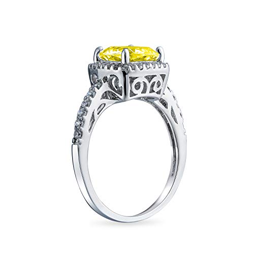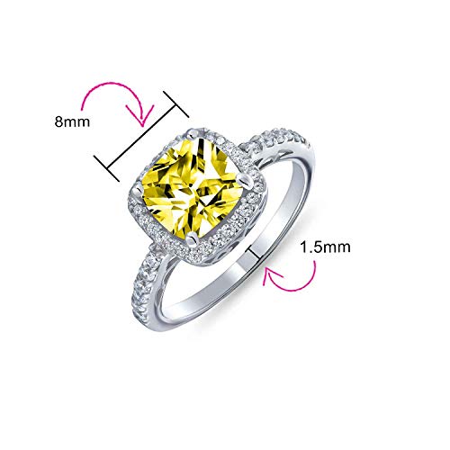 Bling Jewelry 3CT AAA CZ Giallo Canarino Cubic Zirconia Halo Solitaire Piazza Radiante Cuscino Taglio Anello Di Fidanzamento Per Donne .925 Argento 1MM Banda Sottile