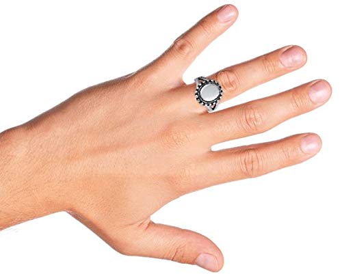 DESIGN ALLA MODA - Questo elegante anello con sigillo in argento sterling 925 ossidato aggiungerà un tocco di raffinatezza al vostro look. La parte superiore ovale è impreziosita da un'impressionante decorazione di perline in stile Bali e da un design a raggiera in corda. Il doppio gambo diviso conferisce un tocco moderno e affascinante. Anello misura 7