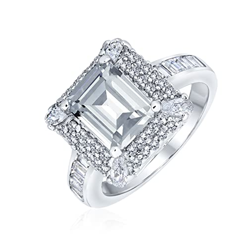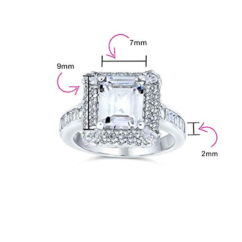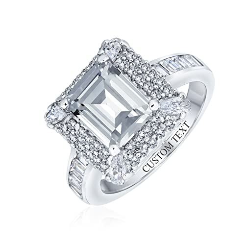 Bling Jewelry Personalizzare Anello Di Fidanzamento Classico 4Ctw Cubic Zirconia Rectangle Halo Aaa Cz Emerald Cut Per Donne .925 Argento Pave Band Promessa Anello Personalizzabile