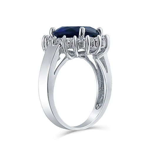 Bling Jewelry Personalizzare Classico Tradizionale 5Ctw Royal Blue Cz Crown Halo Oval Cubic Zirconia Simulato Zaffiro Fidanzamento Per Donne Anello Promessa Placcato Argento Personalizzato Inciso