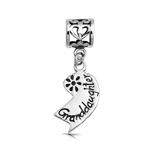 Bling Jewelry Personalizzato Bff Puzzle Due Pezzi Split Cuore Forma Parole Nonna Nipote Pendenti Goccia Charm Ossidato .925 Argento Adatto Bracciale Europeo