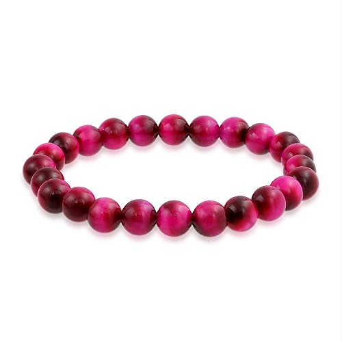 Bling Jewelry Semi Precious Gemstone Fucsia Tiger Eye Round Bead 8MM Stack Stretch Bracciale per Donne Uomini Teen Unisex Single Strand